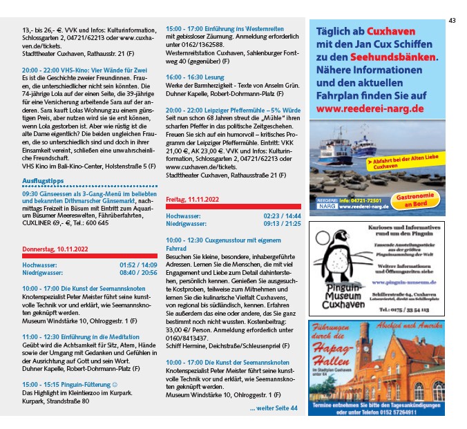 Schlossgarten 2, 04721/62213 oder www.cuxha-ven.