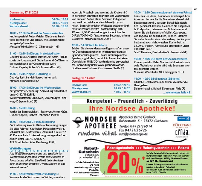 Wattführern angeboten. Preise sowie nähere In-formationen