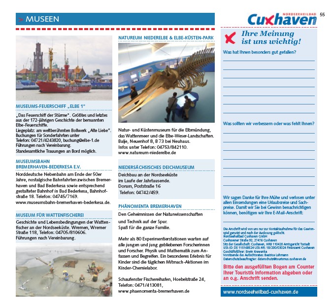 Datenschutzbeauftragter: datenschutz@tourismus.cuxhaven.de