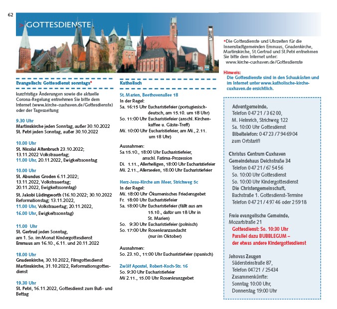 Internet (www.kirche-cuxhaven.de/Gottesdienste)