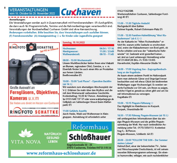 Veranstaltungen der Nordseeheilbad Cuxhaven GmbH sind ohne Kennzeichnung.