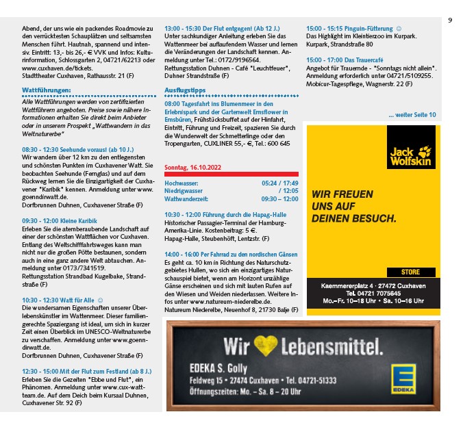 Wattführern angeboten. Preise sowie nähere In-formationen