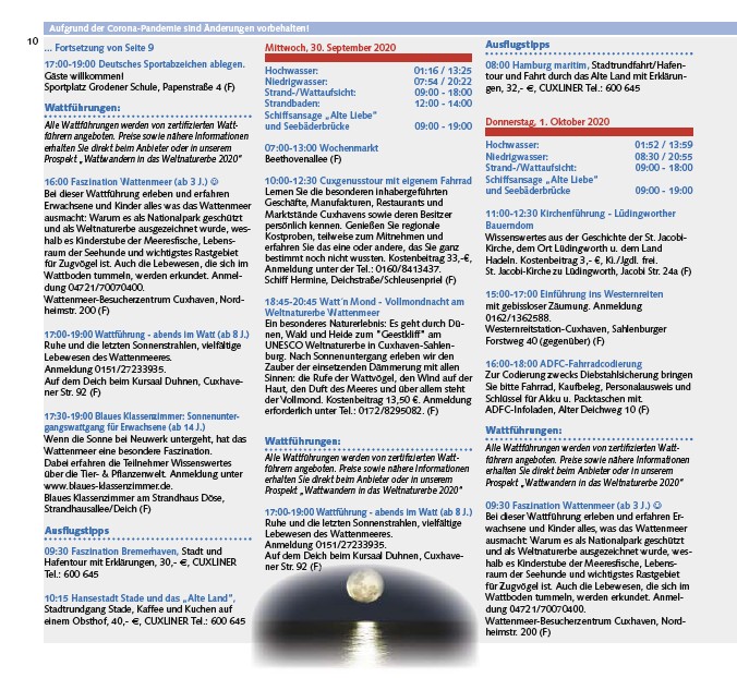Prospekt „Wattwandern in das Weltnaturerbe 2020“