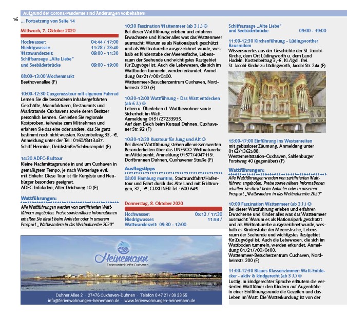 Aufgrund der Corona-Pandemie sind Änderungen vorbehalten! ... Fortsetzung von Seite 14