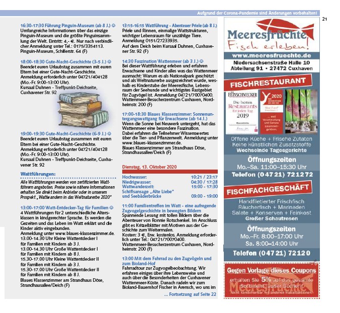 Prospekt „Wattwandern in das Weltnaturerbe 2020“