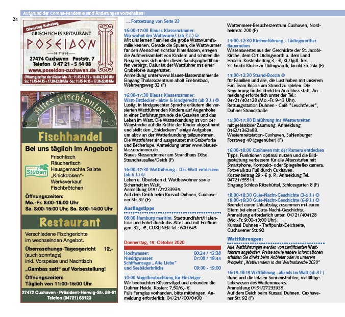 Prospekt „Wattwandern in das Weltnaturerbe 2020“