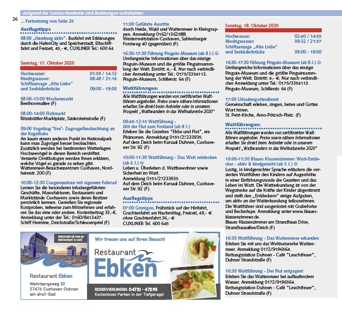 Aufgrund der Corona-Pandemie sind Änderungen vorbehalten! ... Fortsetzung von Seite 25