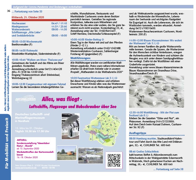 Für Mobilität und Freizeit Auto. Fahrrad, Schiffsverbindungen und Wattwagenfahrten sowie weitere