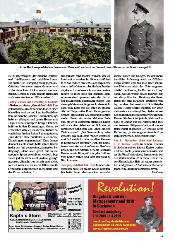 In der Maschinengewehrbatterie Seeheim am Wernerwald, wird auch der Leutnant Hans Bötticher von der Revolution eingeholt.