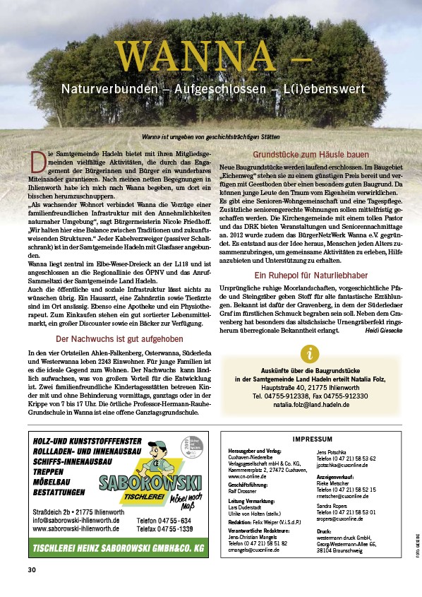 in der Samtgemeinde Land Hadeln erteilt Natalia Folz,