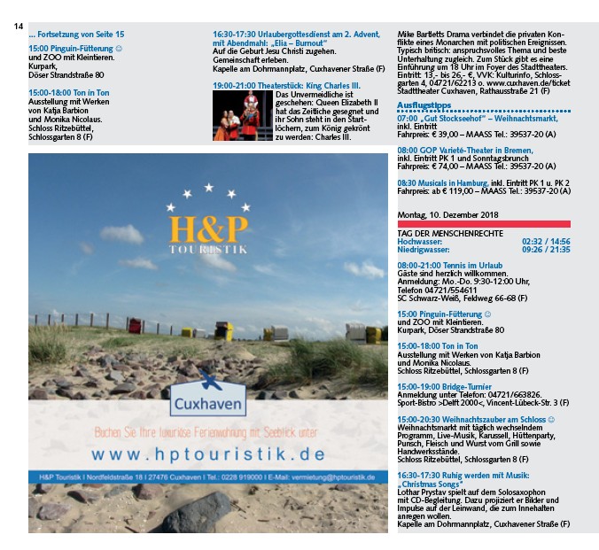 4, 04721/62213 o. www.cuxhaven.de/ticket