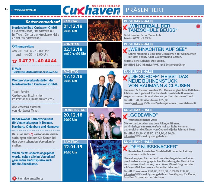Eintritt: Erwachsene ¤ 56,00, ¤ 49,00, ¤ 39,00, ¤ 32,00,
