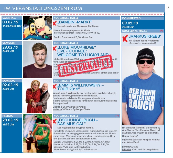 Abendkasse: zuzüglich ¤ 2,00 je Preisklasse.