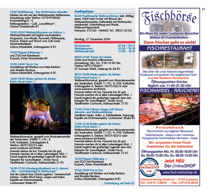 16:30-17:30 Urlaubergottesdienst am 3. Advent,