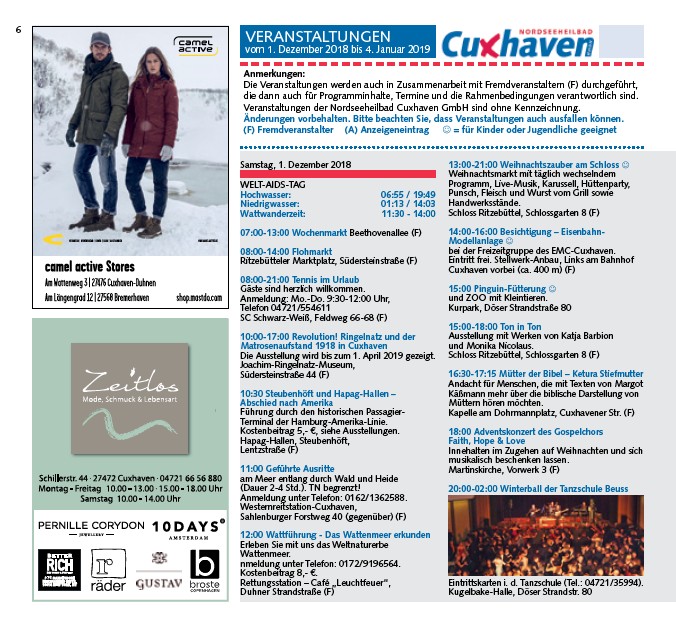 Veranstaltungen der Nordseeheilbad Cuxhaven GmbH sind ohne Kennzeichnung.