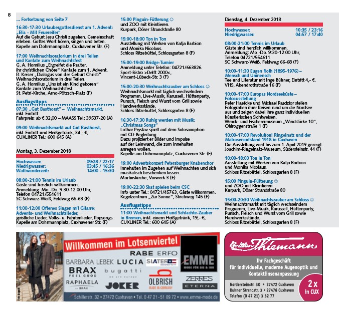 16:30-17:30 Urlaubergottesdienst am 1. Advent:
