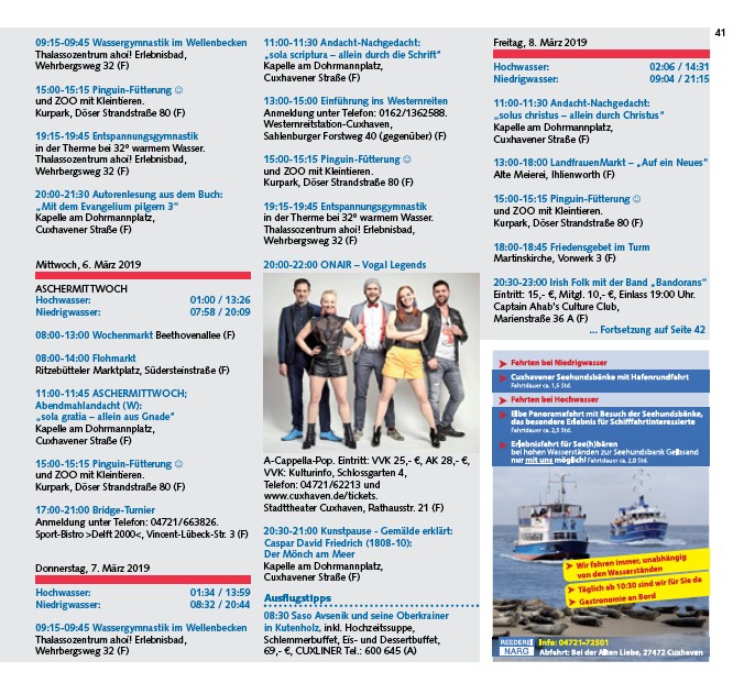 A-Cappella-Pop. Eintritt: VVK 25,- ¤, AK 28,- ¤,