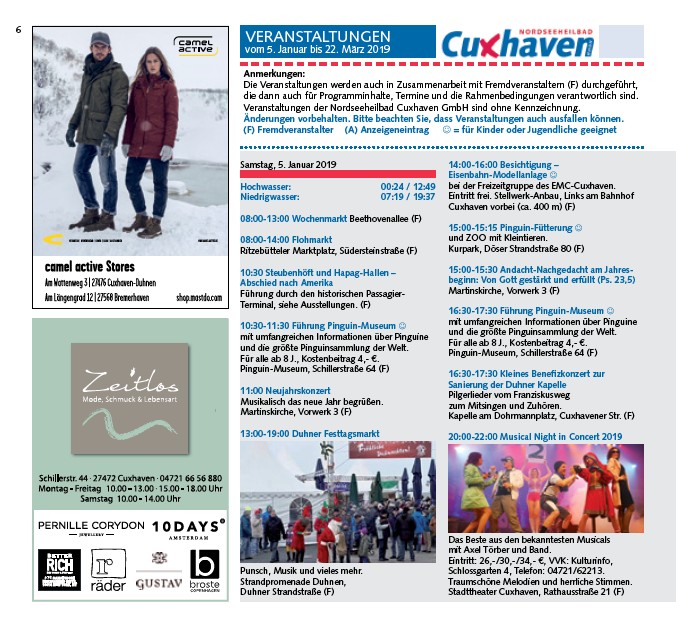 Veranstaltungen der Nordseeheilbad Cuxhaven GmbH sind ohne Kennzeichnung.
