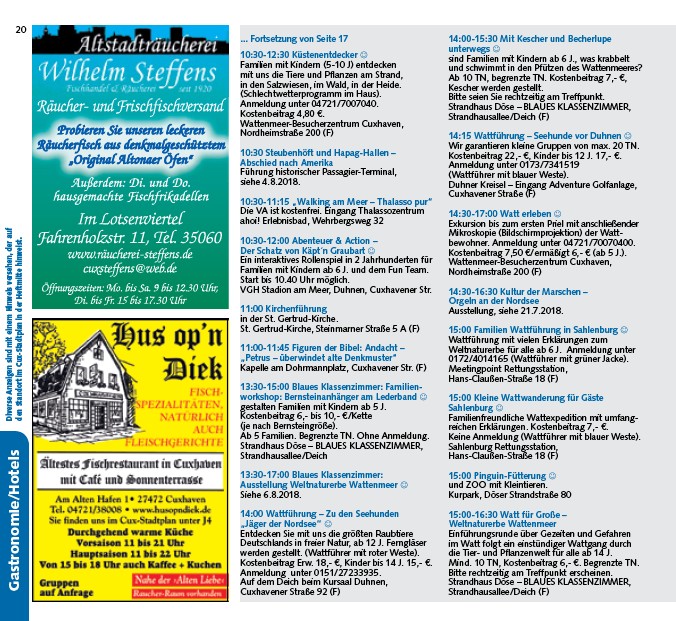 Kostenbeitrag 22,- ¤, Kinder bis 12 J. 17,- ¤.