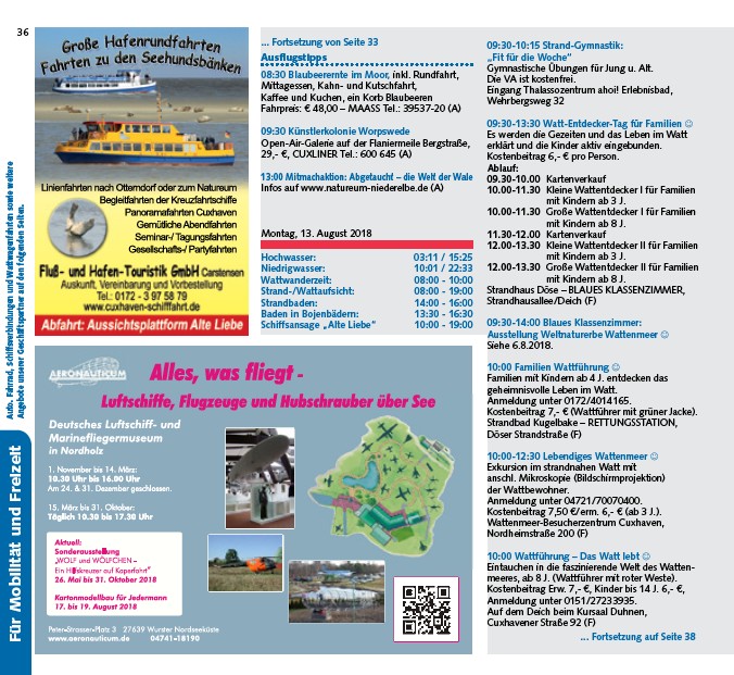 Für Mobilität und Freizeit Auto. Fahrrad, Schiffsverbindungen und Wattwagenfahrten sowie weitere
