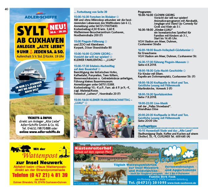 Kostenbeitrag 10,- ¤ p.P., Fam. ab 4 P. je 9,- ¤,