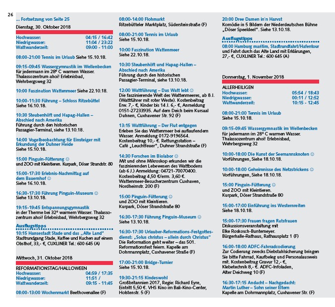 10:00 Faszination Wattenmeer Siehe 22.10.18.