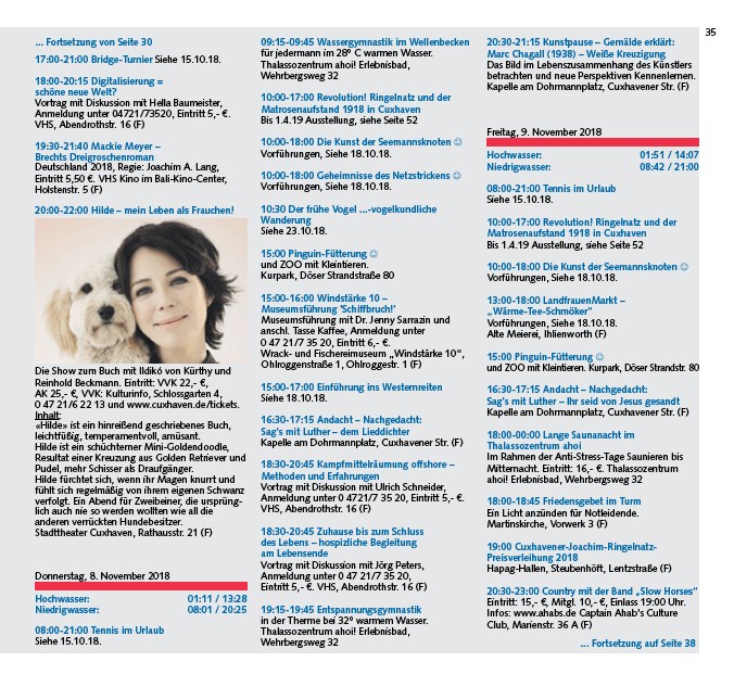 Anmeldung unter 04721/73520, Eintritt 5,- €.
