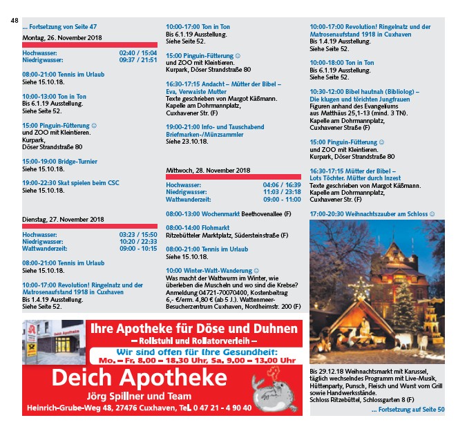 6,- €/erm. 4,80 € (ab 5 J.). Wattenmeer-