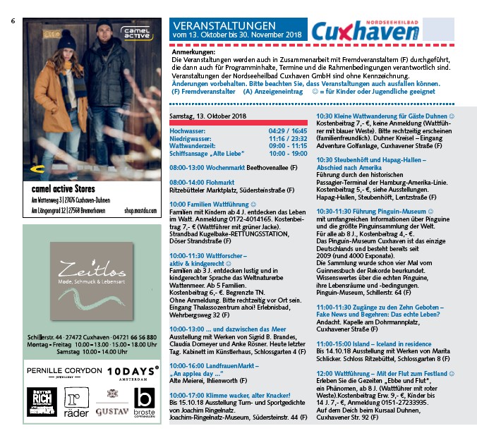 Veranstaltungen der Nordseeheilbad Cuxhaven GmbH sind ohne Kennzeichnung.