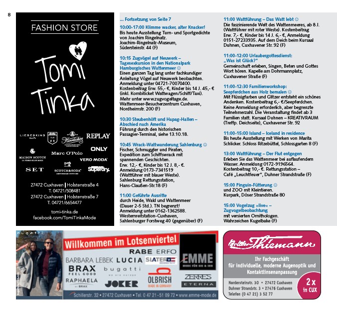 (inkl. Kombiticket Wattwagen/Schiff/Taxi).