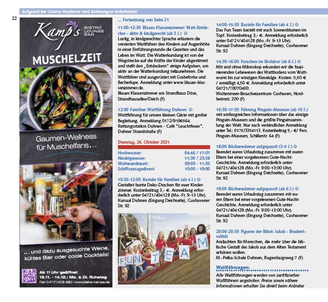 Aufgrund der Corona-Pandemie sind Änderungen vorbehalten! ... Fortsetzung von Seite 21