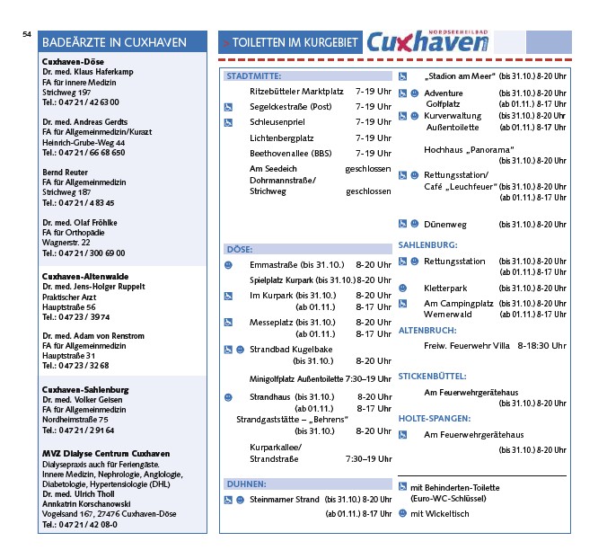 BADEÄRZTE IN CUXHAVEN > TOILETTEN IM KURGEBIET