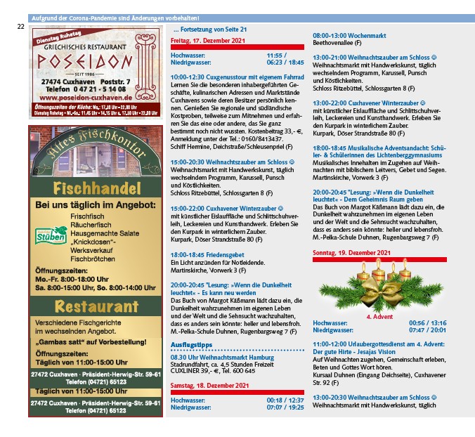 Aufgrund der Corona-Pandemie sind Änderungen vorbehalten! freitag, 17. dezember 2021