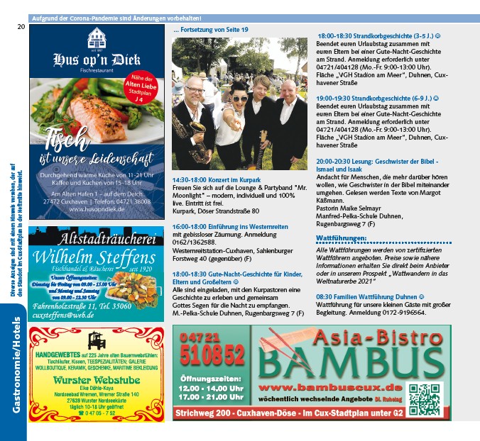 Aufgrund der Corona-Pandemie sind Änderungen vorbehalten! 18:00-18:30 Strandkorbgeschichte (3-5 J.) J