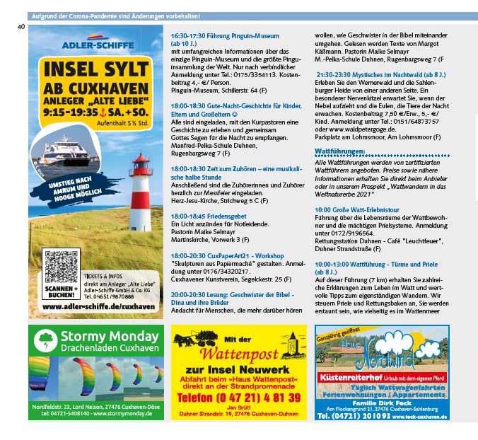 Aufgrund der Corona-Pandemie sind Änderungen vorbehalten! 16:30-17:30 Führung Pinguin-Museum