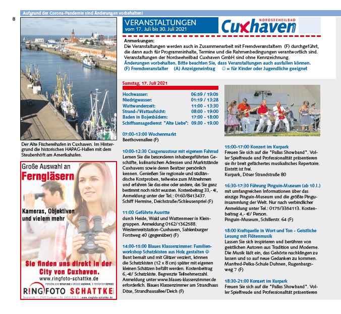 Veranstaltungen der Nordseeheilbad Cuxhaven GmbH sind ohne Kennzeichnung.