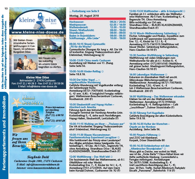 Strand-/Wattaufsicht: 08:00 - 19:00