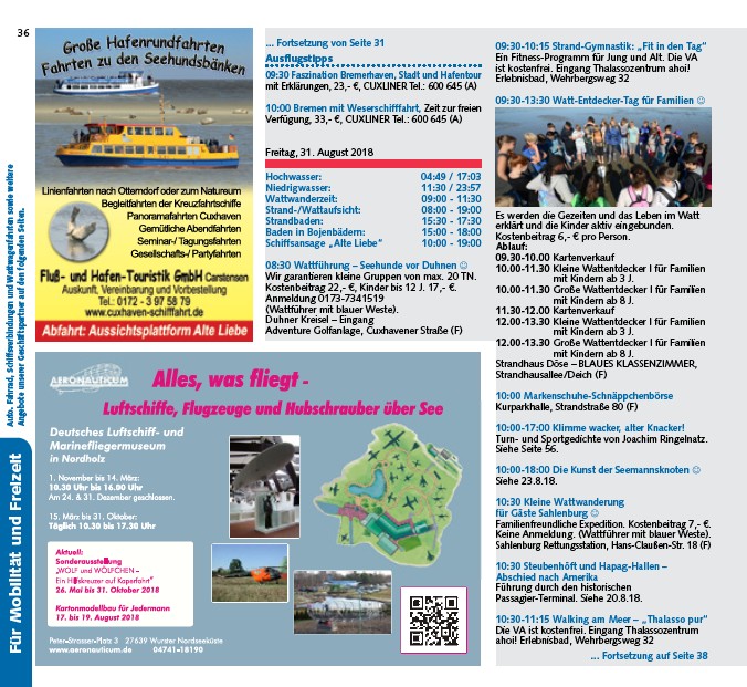 Für Mobilität und Freizeit Auto. Fahrrad, Schiffsverbindungen und Wattwagenfahrten sowie weitere