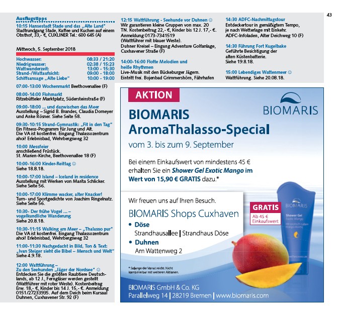TN. Kostenbeitrag 22,- ¤, Kinder bis 12 J. 17,- ¤.