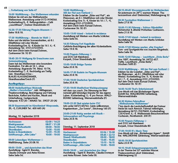 7,50 ¤/erm. 6,- ¤. Wattenmeer-Besucherzentrum