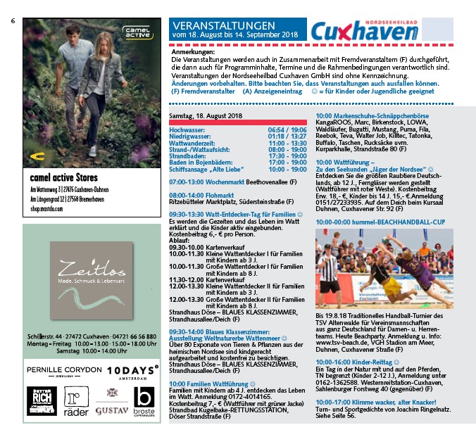 Veranstaltungen der Nordseeheilbad Cuxhaven GmbH sind ohne Kennzeichnung.