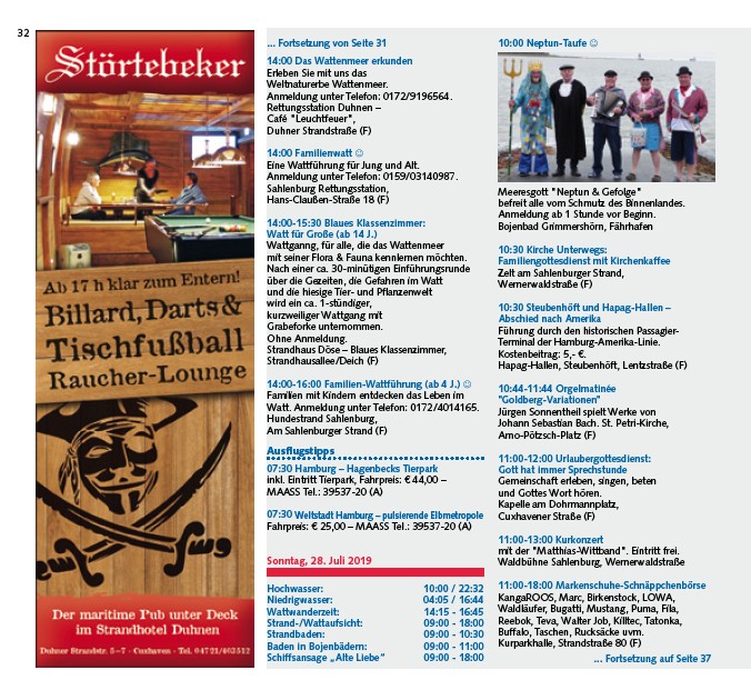 Strand-/Wattaufsicht: 09:00 - 18:00