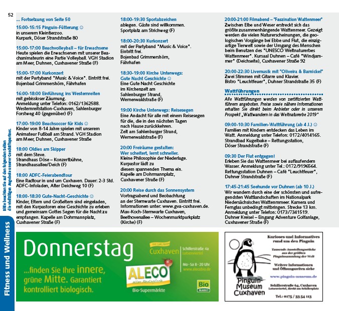 ... Fortsetzung von Seite 50 20:00-21:00 Filmabend – "Faszination Wattenmeer"