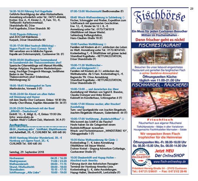 Anmeldung erforderlich unter Tel.: 04721-404444,