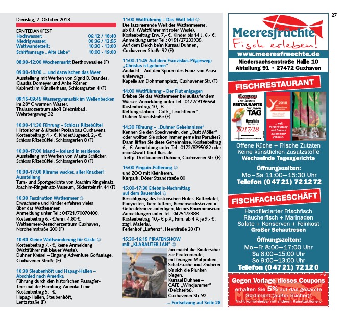 Kostenbeitrag 10,- ¤ p.P., Fam. ab 4 P. je 9,- ¤,