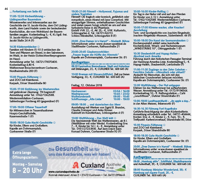 und Aufenthalt, 39,- ¤, CUXLINER Tel.: 600 645 (A)
