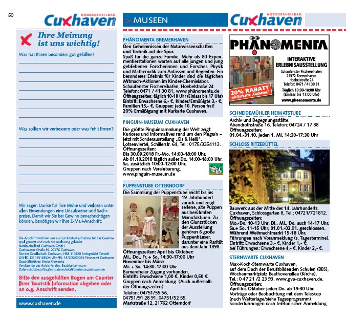 Telefon: 0471 / 41 30 81, www.phänomenta.de