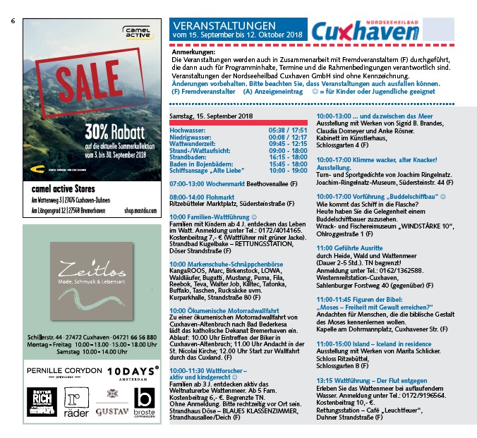 Veranstaltungen der Nordseeheilbad Cuxhaven GmbH sind ohne Kennzeichnung.