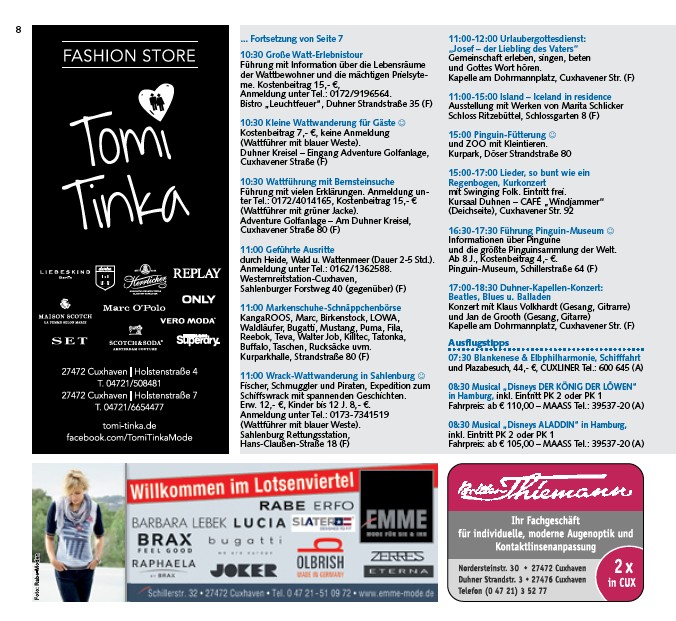 und Plazabesuch, 44,- ¤, CUXLINER Tel.: 600 645 (A)
