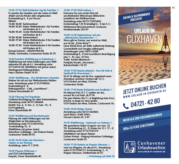 Anmeldung unter 04721/70070400.
